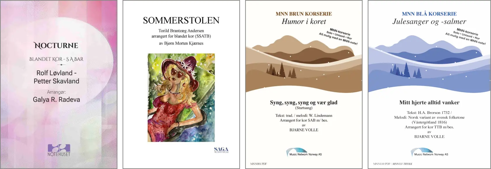 Oppdag vår omfattende Kor-serie, skreddersydd for sangere i alle aldre og ferdighetsnivåer. Her finner du blandet kor, damekor og mannskor. Varierende vanskelighetsgrader og repertoar. Enten du synger i et lite kammerkor eller et stort symfonisk kor, tilbyr vi et bredt utvalg av noter som passer dine behov. Utforsk våre arrangementer som spenner fra klassiske perler til moderne hits.